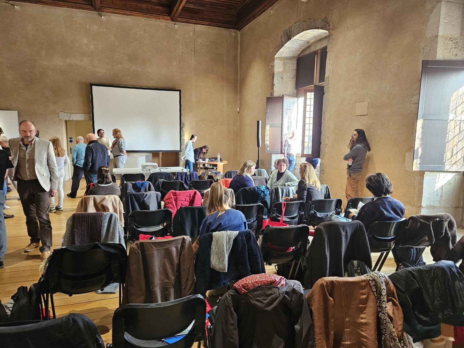 Cette journée d’étude a eu lieu, comme indiqué précédemment, au Musée-Château d’Annecy dans une des deux salles pouvant accueillir ce type d’évènements. Les échanges ayant eu lieu durant l’exposition, les chercheurs étaient invités à la visiter. Quarante personnes en tout se sont réunis pour suivre ces communications et débats, mais aussi autour d’un café et d’un déjeuner, moments conviviaux mais propices à l’invention de nouvelles collaborations scientifiques.